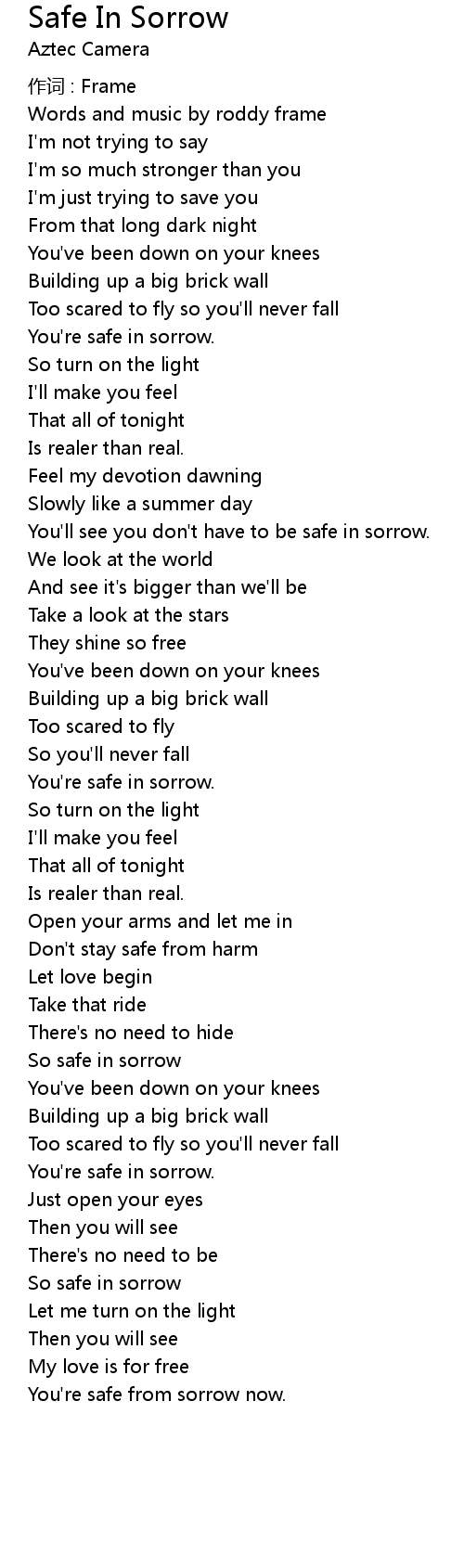 | You' ll see you don' t have to be safe in sorrow. | |