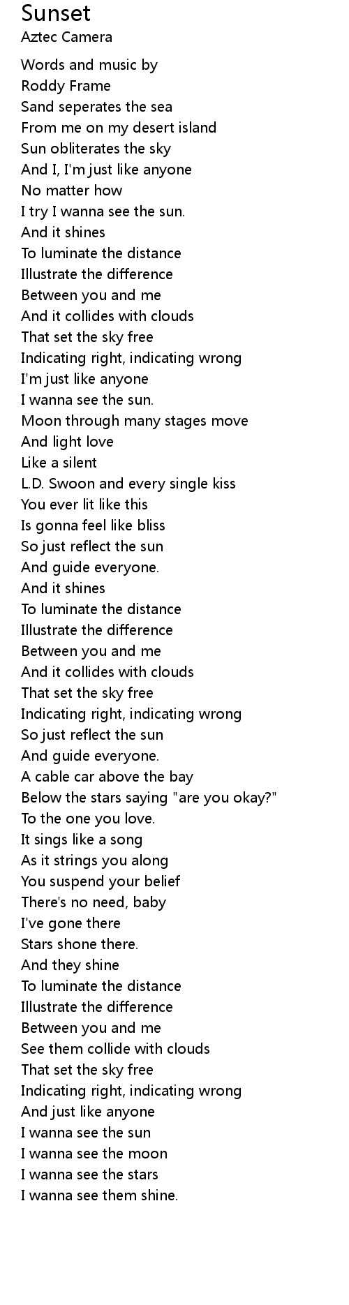 Sunset 歌词