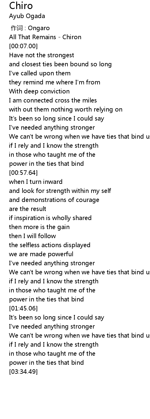 | [00:43.08] | We can't be wrong when we have ties that bind us |