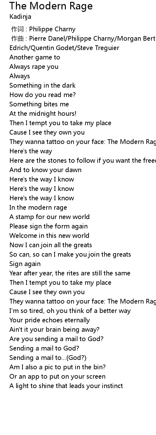 | [00:55.39] | They wanna tattoo on your face: The Modern Rage! |