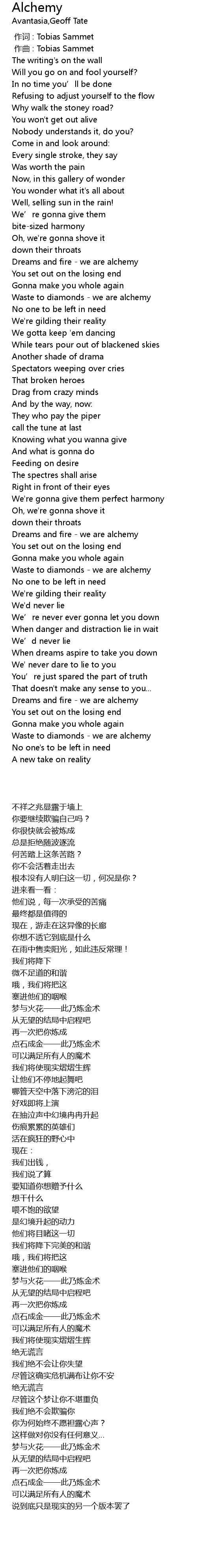| [02:34.38] | Dreams and fire - we are alchemy |