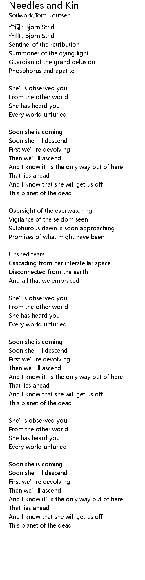 | 作词 : Björn Strid | |
