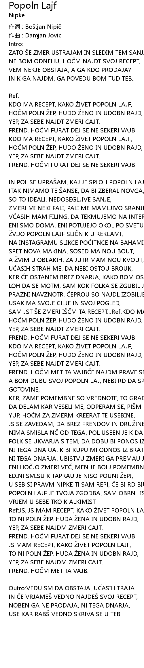 | 作词 : Boštjan Nipič | |