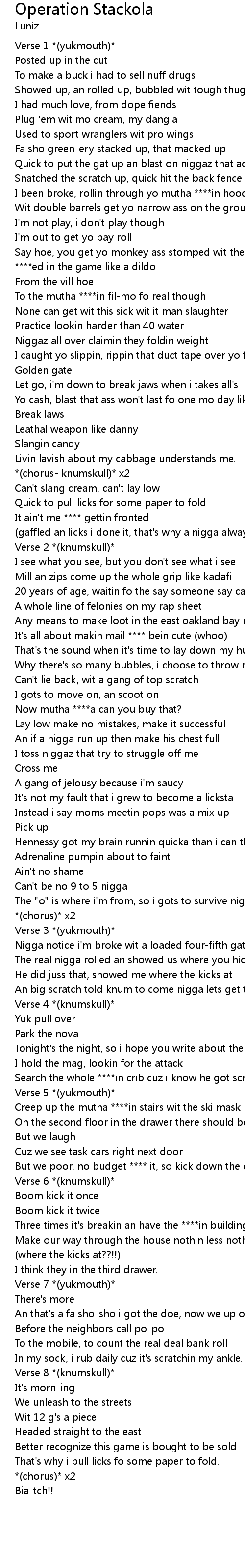 I been broke, rollin through yo mutha ****in hood in trench coats |