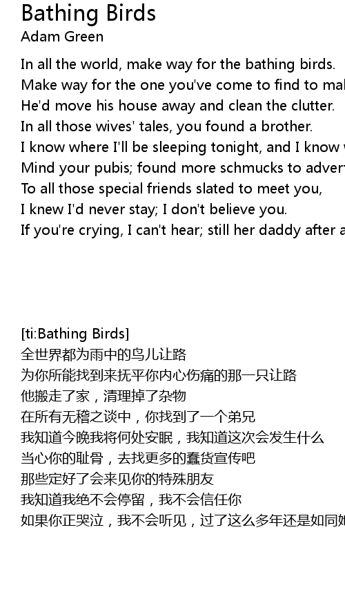 In all the world, make way for the bathing birds. |