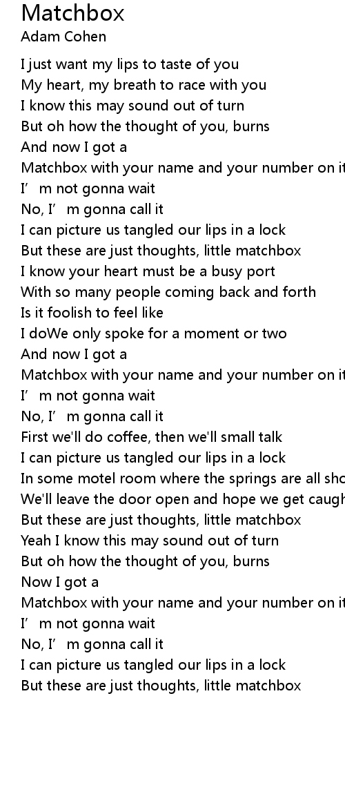 | But these are just thoughts, little matchbox |
