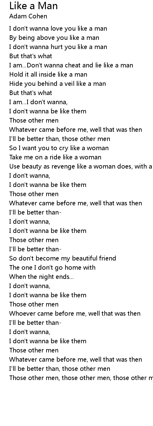 I am...Don't wanna cheat and lie like a man |