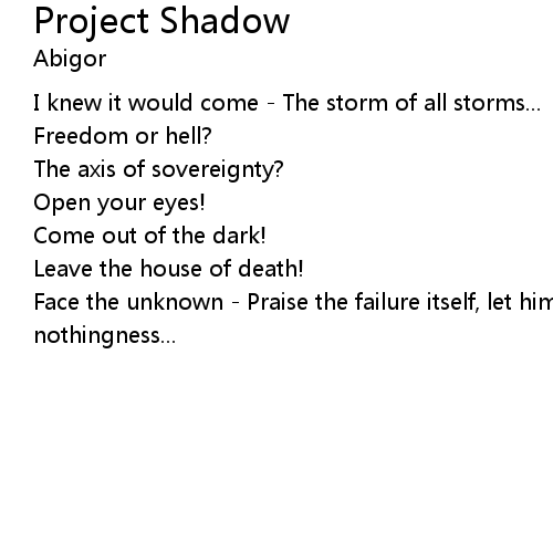| Face the unknown - Praise the failure itself, let him be your comrade in nothingness... |