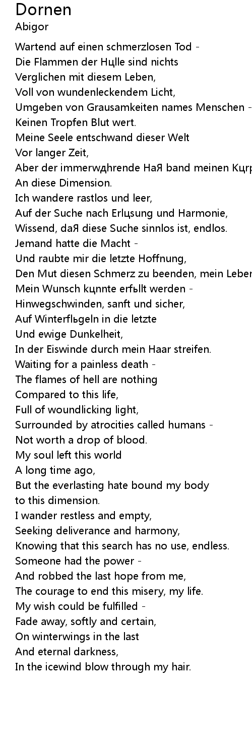 | Aber der immerwдhrende HaЯ band meinen Kцrper | |