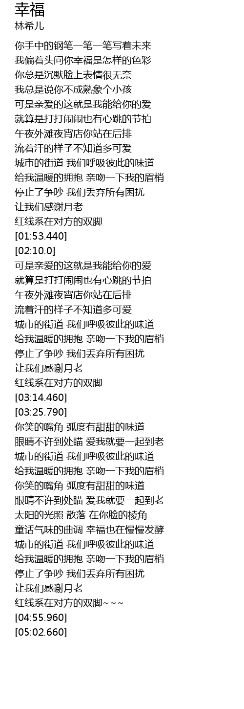 | [03:44.270] | 你笑的嘴角 弧度有甜甜的味道 |