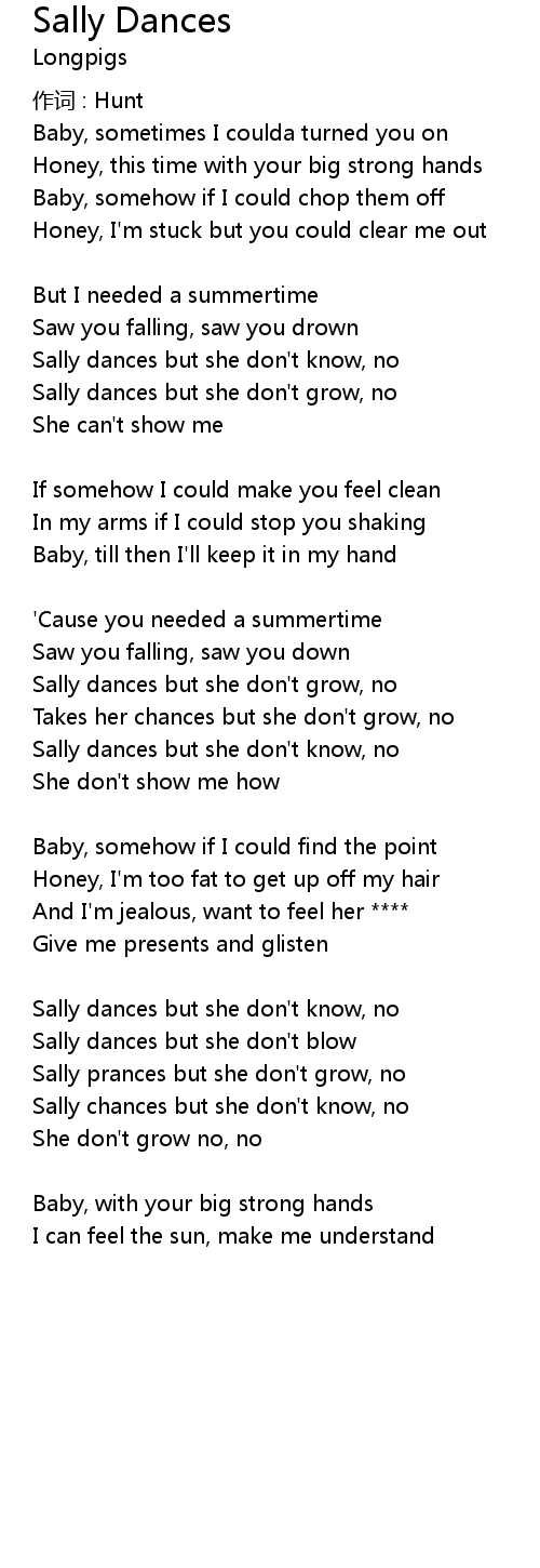 | Sally dances but she don' t know, no | |