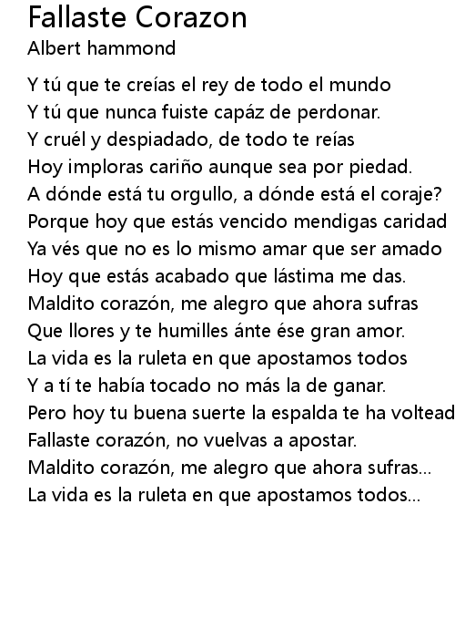 | Fallaste corazó n, no vuelvas a apostar. | |