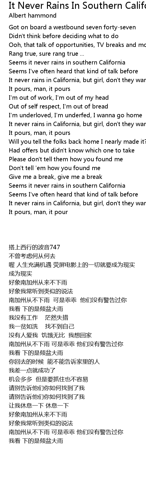 It Never Rains In Southern California (Con Al Stewart) 歌词
