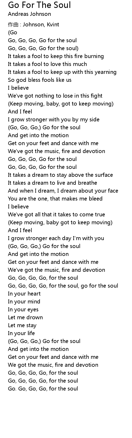 | Go, Go, Go, Go, for the soul | |
