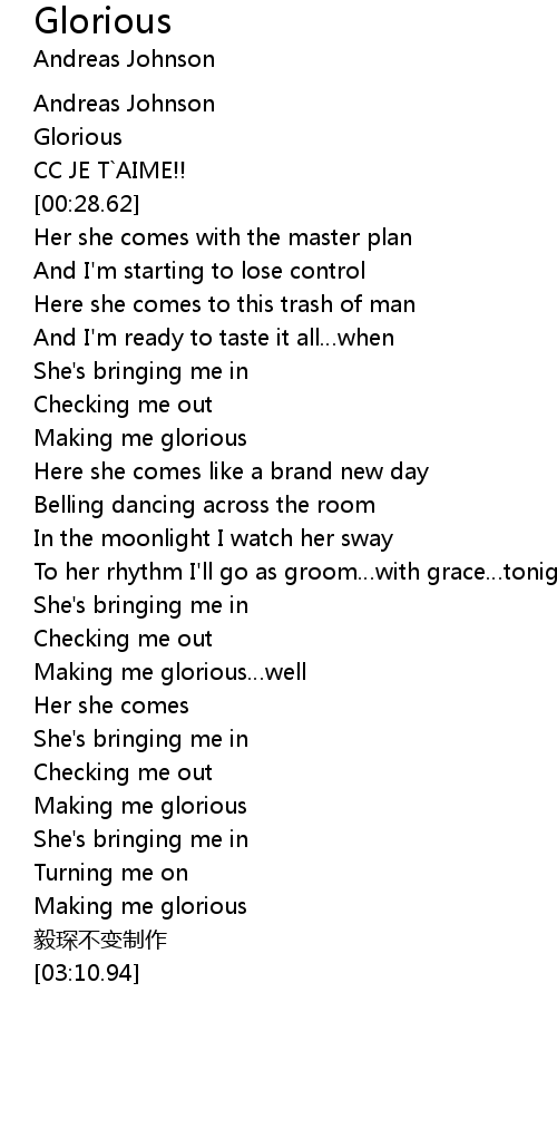 | [02:51.07] | Making me glorious |