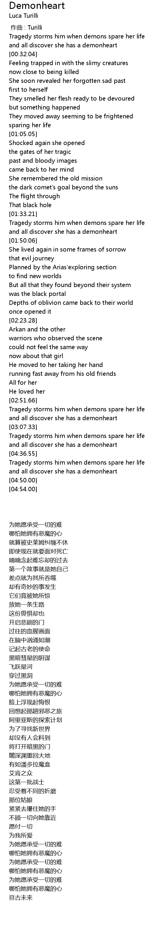 | [01:38.11] | Tragedy storms him when demons spare her life |
