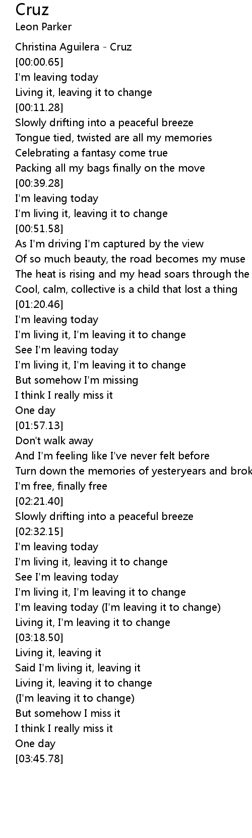 I'm leaving today (I'm leaving it to change) |