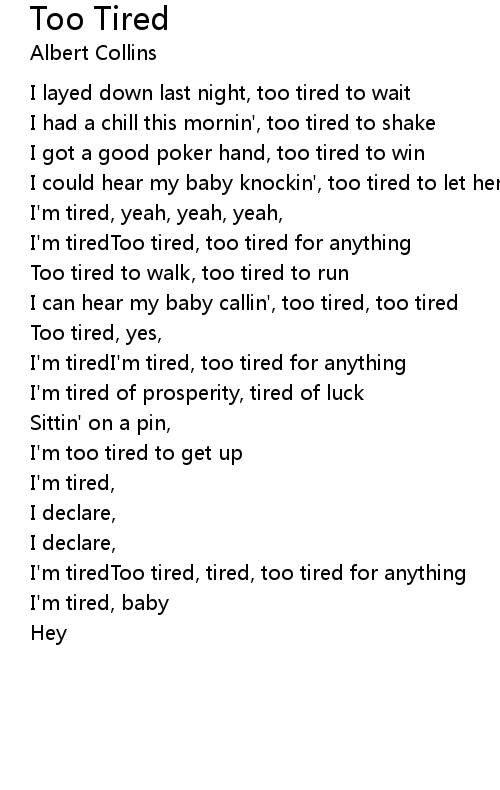 I'm tiredToo tired, tired, too tired for anything |