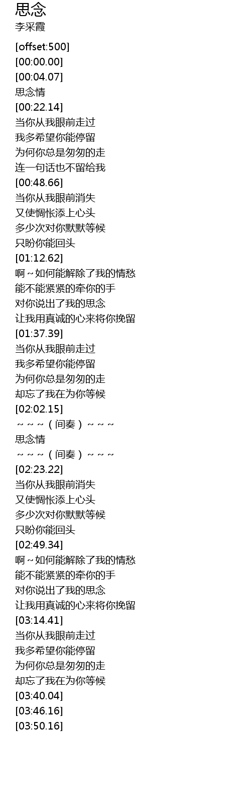 | [03:01.71] | duì nǐ shuō chū le wǒ de sī niàn |