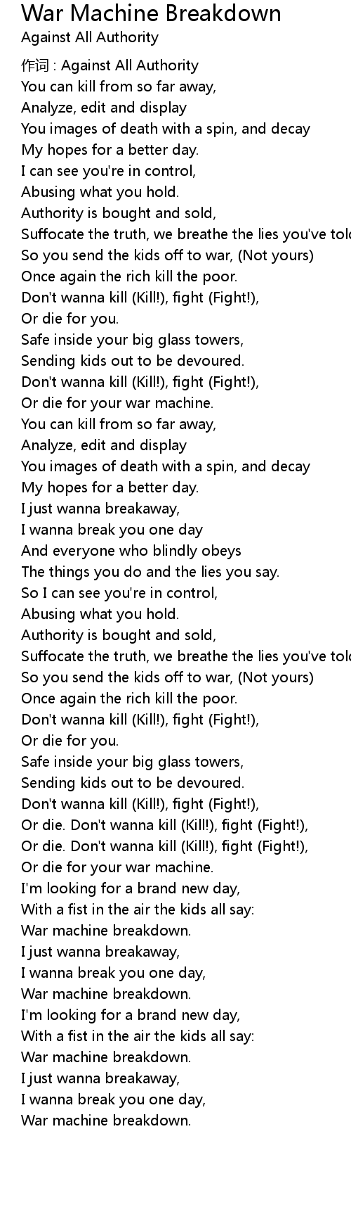 | 作词 : Against All Authority | |