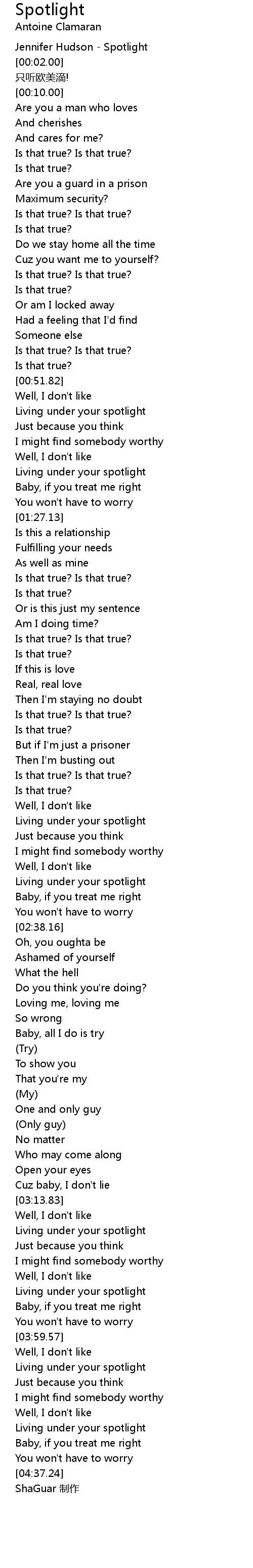 | [00:00.00] | Jennifer Hudson - Spotlight |