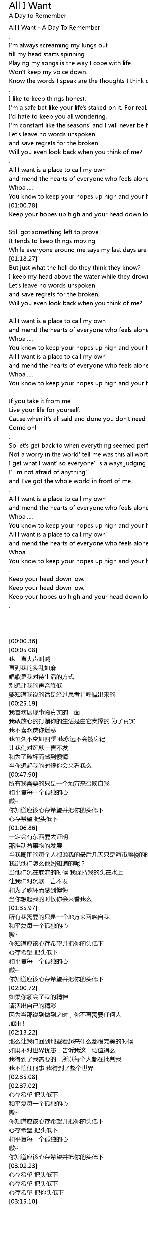| [00:00.36] | All I Want - A Day To Remember |