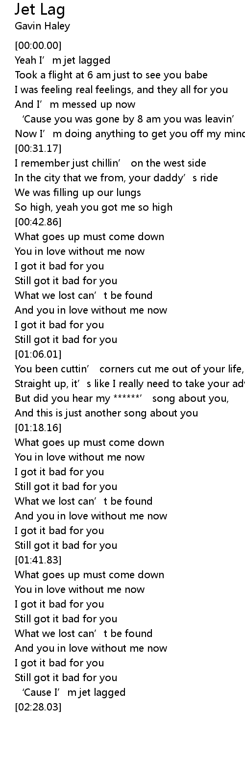 | [02:26.17] | ' Cause I' m jet lagged |
