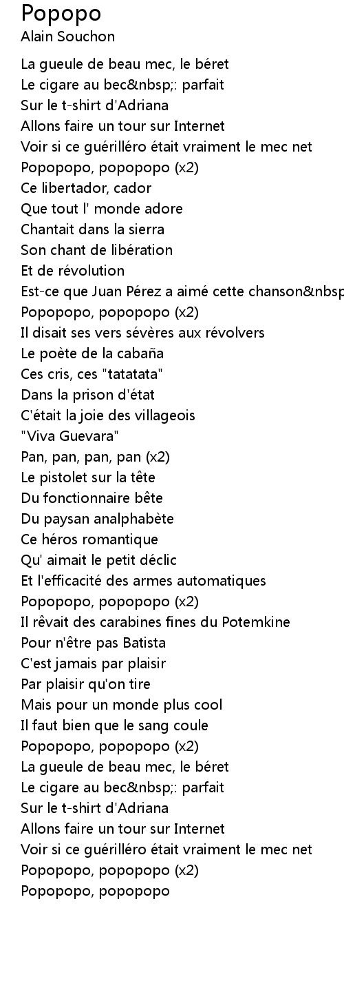 | Estce que Juan Pe rez a aime cette chanson nbsp? | |