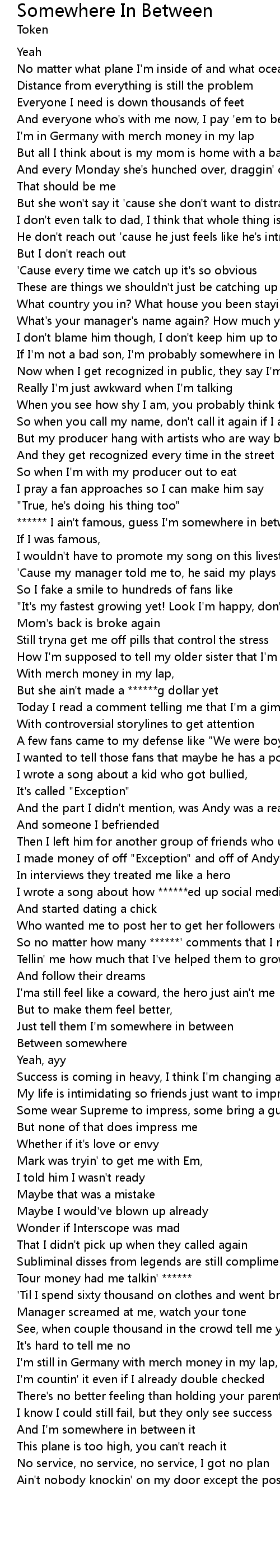 [01:52.56] ****** I ain't famous, guess I'm somewhere in between