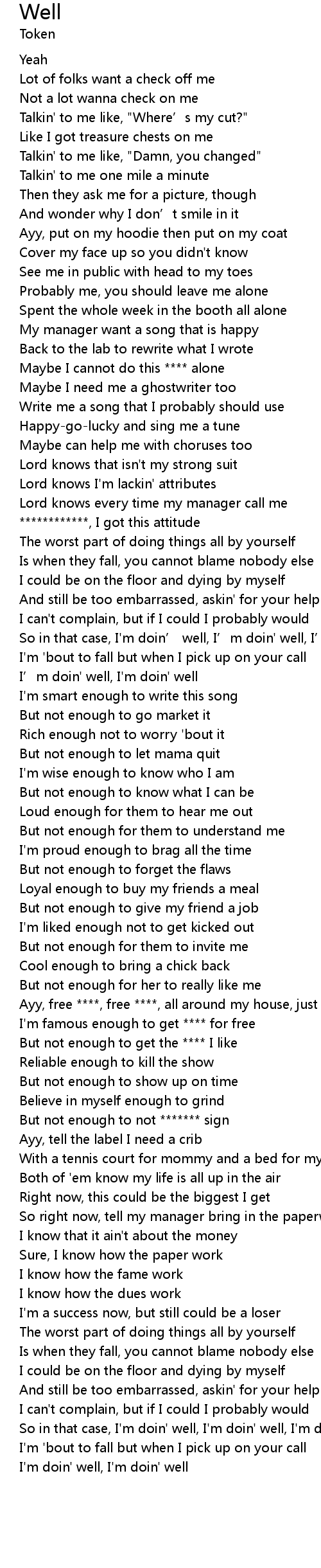| [01:18.89] | So in that case, I'm doin’ well, I’m doin' well, I’m doin' well |