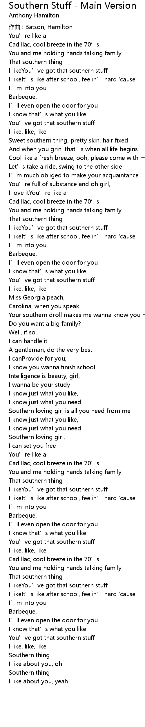 | 歌曲 | Southern Stuff - Main Version |