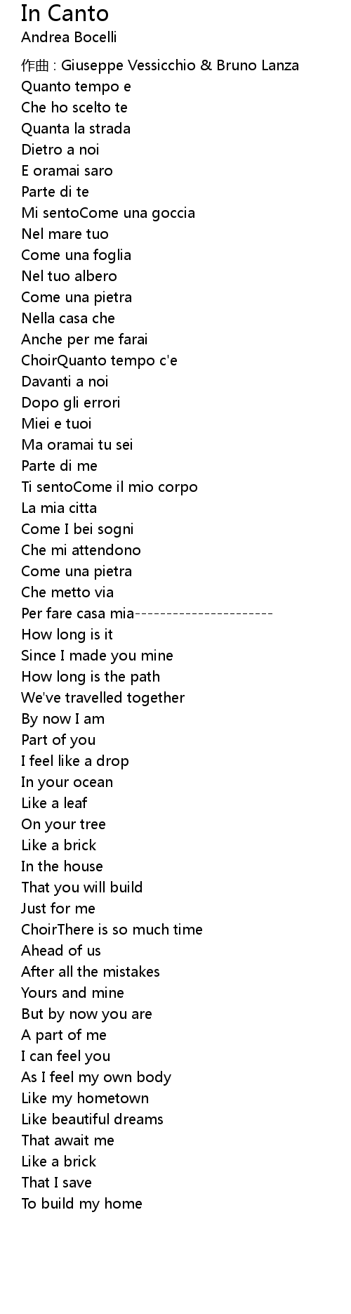 | 歌曲 | In Canto |