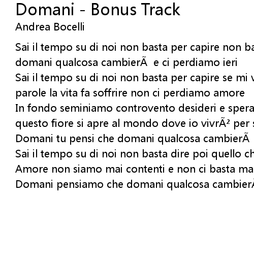 | Sai il tempo su di noi non basta per capire non basta mai domani pensiamo che domani qualcosa cambier e ci perdiamo ieri | |