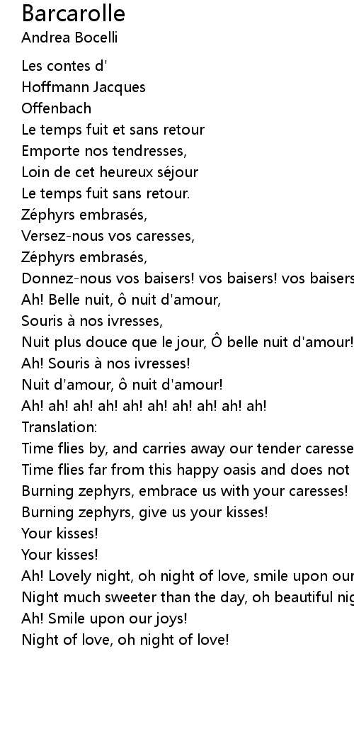 | Ah! Belle nuit, ô nuit d'amour, | |