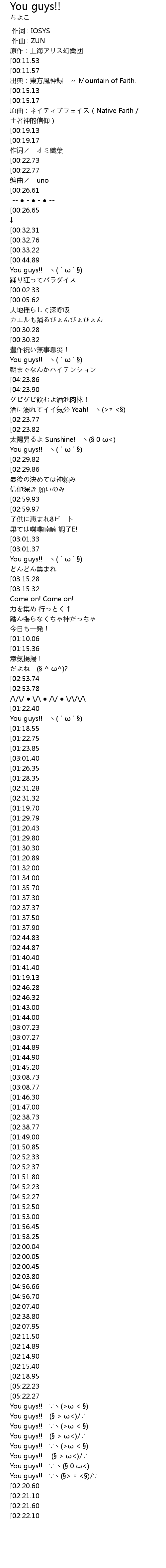 | [00:11.60] | 出典:東方風神録 ~ Mountain of Faith. |