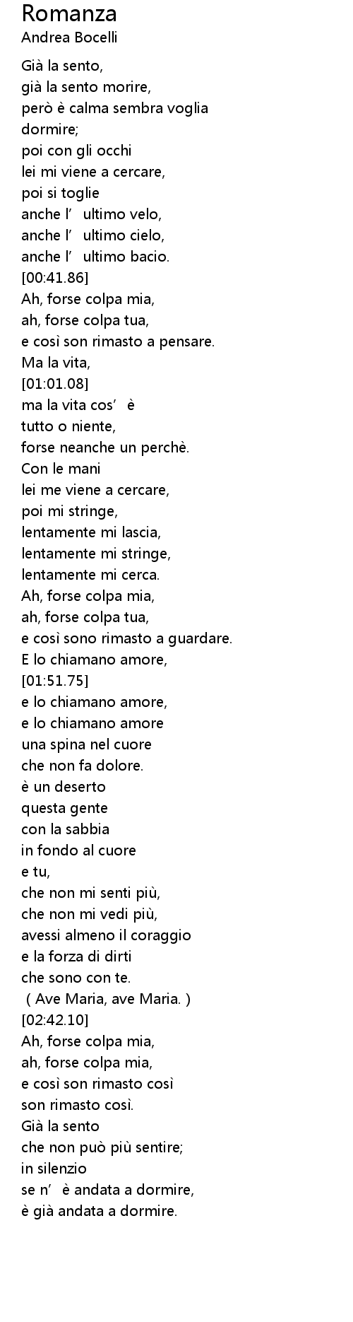 | [02:43.46] | Ah, forse colpa mia, |