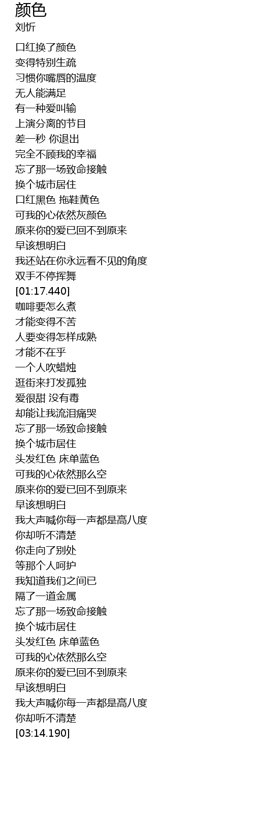 | [00:16.050] | kǒu hóng huàn le yán sè |