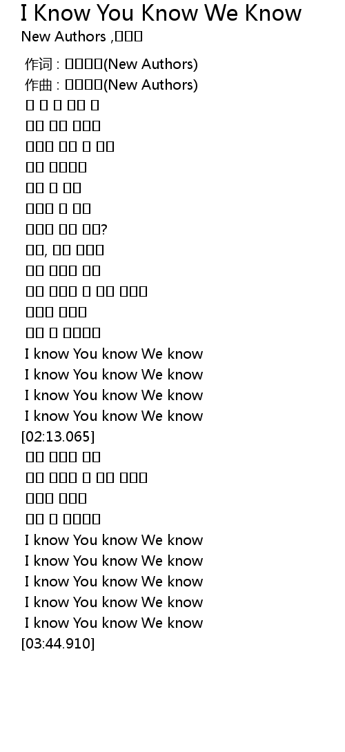 I Know You Know We Know 歌词