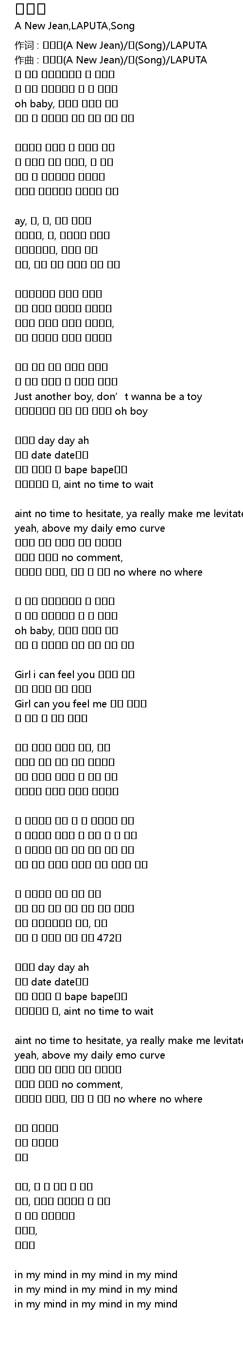 作词 : 어뉴진(A New Jean)/송(Song)/LAPUTA