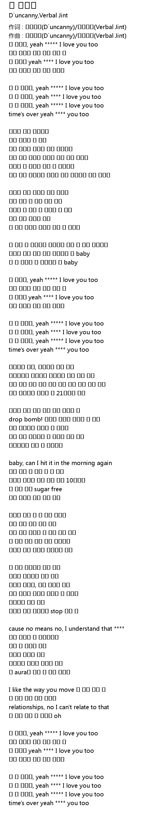 作词 : 디언캐니(D`uncanny)/버벌진트(Verbal Jint)
