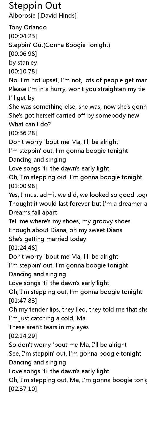 [02:19.89] See, I'm steppin' out, I'm gonna boogie tonight