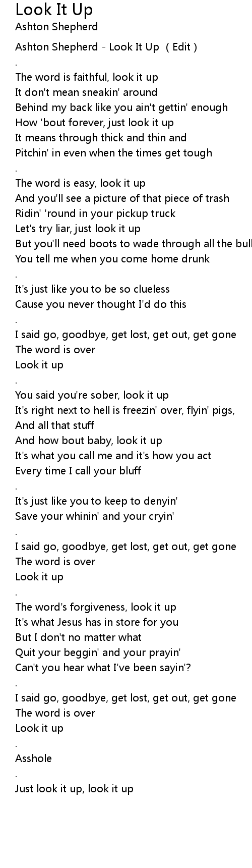 | [00:00.29] | Ashton Shepherd - Look It Up (Edit) |