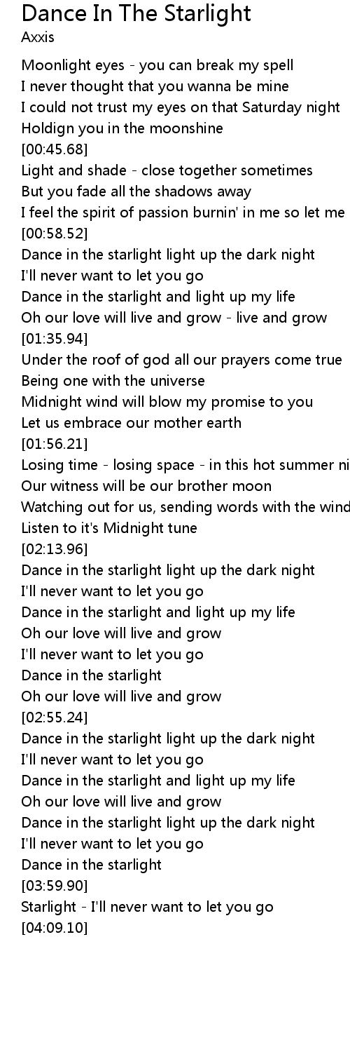 Dance in the starlight light up the dark night |
