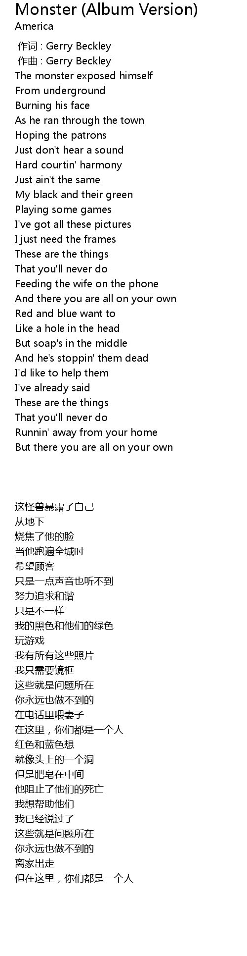 | [00:00.000] | zuo ci : Gerry Beckley |