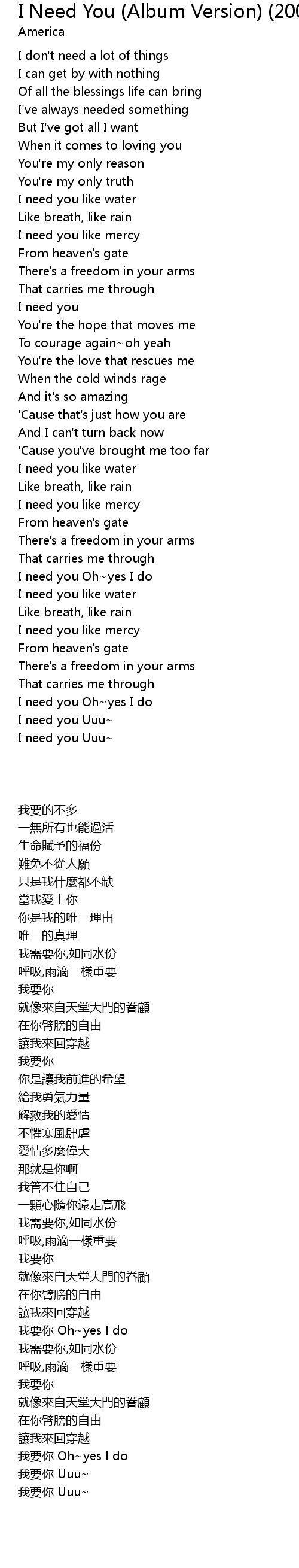 [02:48.480] I need you Oh~yes I do