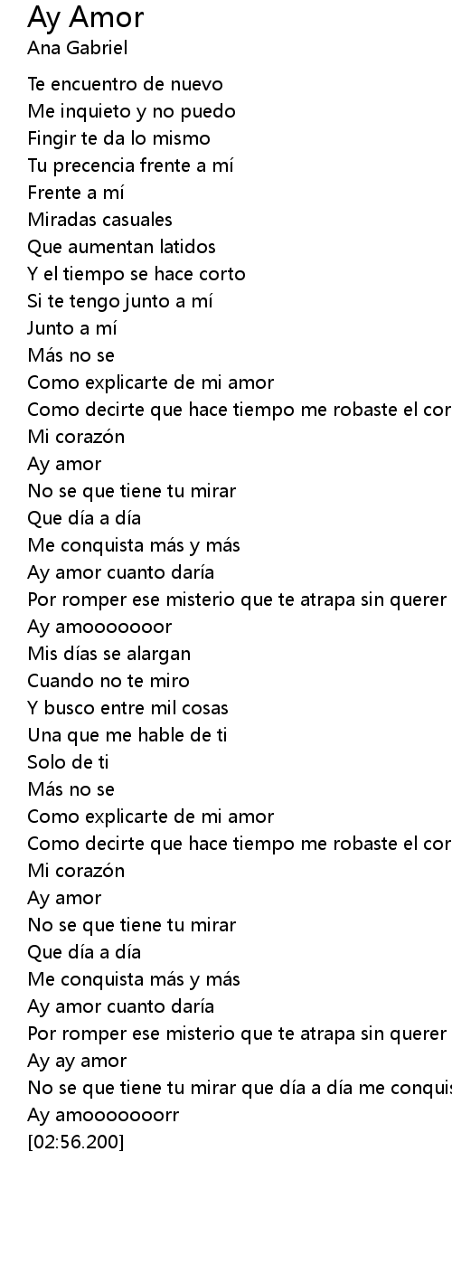 | [02:04.400] | Como decirte que hace tiempo me robaste el corazo n |