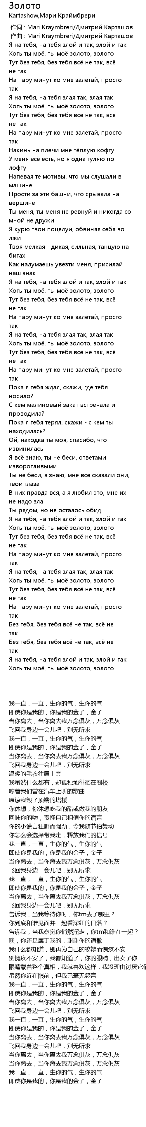 | [02:34.70] | Хоть ты моё, ты моё золото, золото |