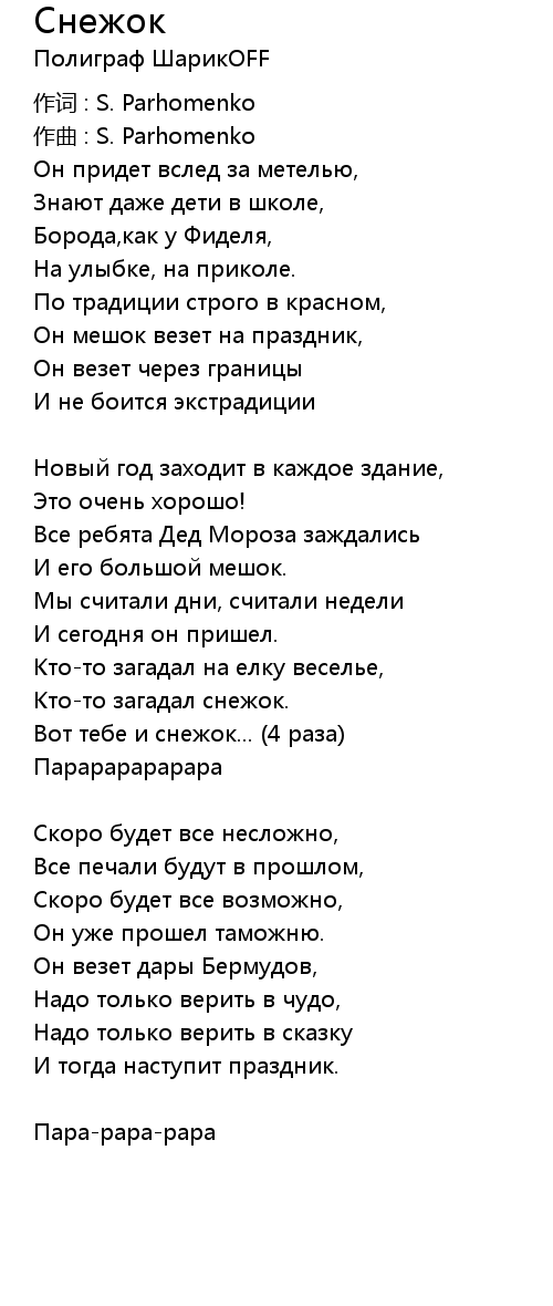 Снежок 歌词