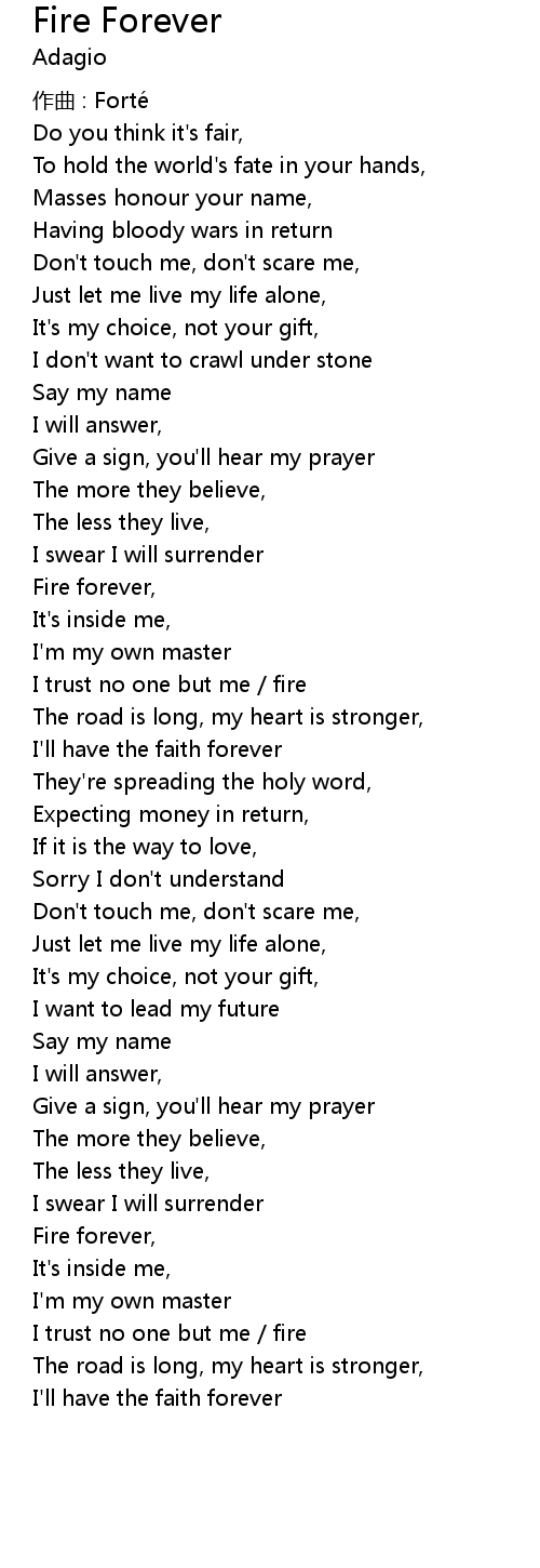 | Fire forever, | |