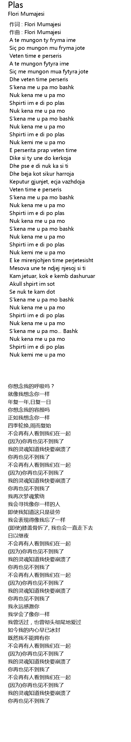 | [00:00.000] | 作词 : Flori Mumajesi |